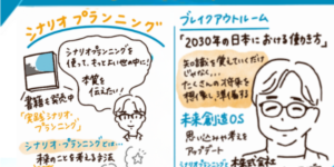 キャリアトレイルは月に2回定期勉強会を行っています。見えない未来は描き出せ!今回は外部講師スタイリッシュ・アイデア 新井 宏征 氏をお呼びして、シナリオプランニングを体験。2時間拡大版での勉強会でした!