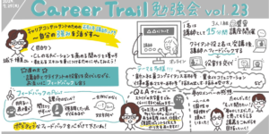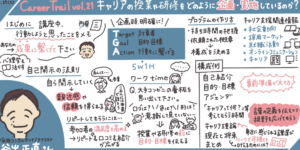 Activities / イベント CareerTrail 勉強会 vol.21(2024/06/29) キャリアトレイルは月に2回定期勉強会を行っています。今回は勉強会vol.19に続く第2弾!企業、学生、学校、メディアや就職支援のサービス会社など、様々な視点から「働く」の在り方と愚直に向き合ってきた谷出正直氏による「キャリアの授業や研修をどのように考え、企画、実施しているのか?」。